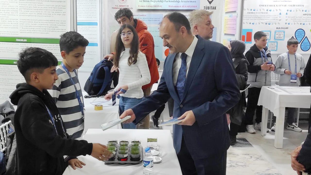 Sergi alanını gezerek öğrencilerin hazırladığı projeleri inceleyen Van İl Millî Eğitim Müdürü Bilal Yılmaz Çandıroğlu, çalışmalar hakkında öğrencilerden bilgi aldı.