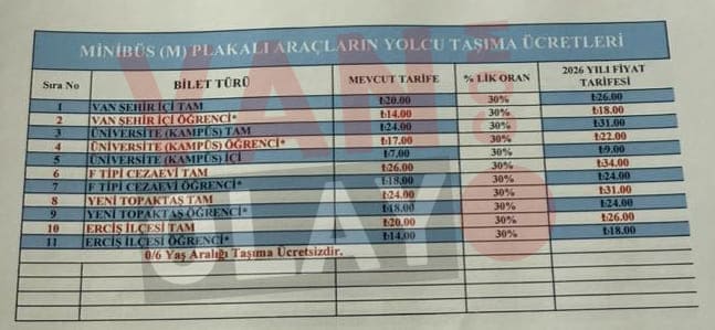 VAN TOPLU TAŞIMA YENİ ÜCRETLERİ