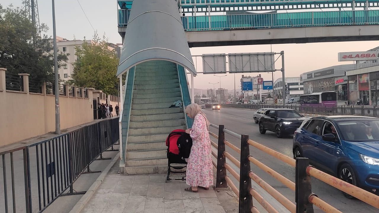Bir annenin bebek arabasıyla merdivenlerin başında çaresiz kaldığı görüntü, şehirde bu alanda yaşanan eksikliklerin en somut örneklerinden biri olarak dikkat çekti.