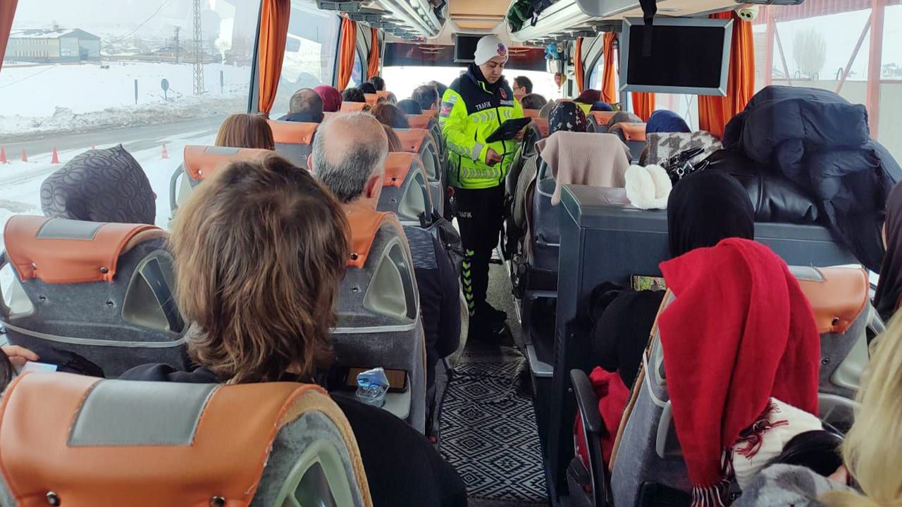 Uygulama kapsamında yolcu otobüslerinde seyahat eden 92 vatandaşa, trafik güvenliğinin artırılmasına yönelik bilgilendirme eğitimi verildi.
