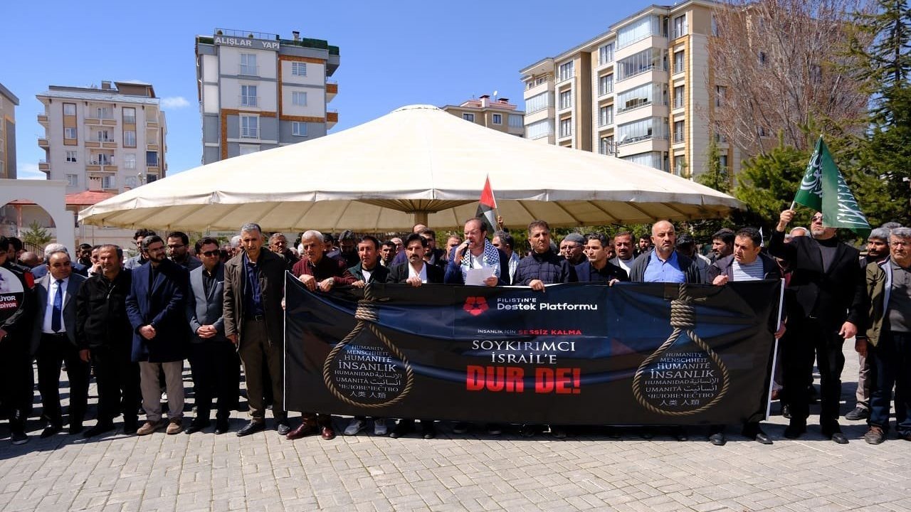 Platform adına basın açıklamasını okuyan Memur-Sen Van Şube Başkanı Mehmet Ali Uca, “Gözü dönmüş, azgın bir grup Siyonist tarafından planlanmış ve ne yazık ki uygulamaya konulmuş, akıl almaz bir dönemi yaşamaktayız. Tüm değerlerin yok sayıldığı, çiğnendiği bir zaman diliminden geçmekteyiz. İnsanlık adeta azgın ve sapkın bir ideoloji tarafından ne yazık ki rehin alınmıştır. Biz eser değiliz, bu esaret girişimine karşı kayıtsız kalacakta değiliz. Siyonist rejim şunu bilsin ki; zalimlerin topuna, canımızla, başımızla, elimizle aşımızla, varımızla yoğumuzla direneceğiz. Siyonist İsrail rejimi tarafından, Gazze’de işlenen soykırımın kahredici acısı vicdanlarda canlı dururken, Lübnan’da ve İran’da ortaya konan yeni vahşetler insanlığı bir kez daha derinden sarsmaktadır. 165 İranlı öğrencinin, Siyonist rejim tarafından okul sıralarında katledilmesi ve bu katliamın küresel vicdanda yeteri kadar yer bulmaması bizleri derinden sarssa da, bugün burada olduğu gibi dünyanın dört bir yanından yükselen itiraz sesleri bir nebze olsun umudumuzu yeşertmektedir.” dedi.