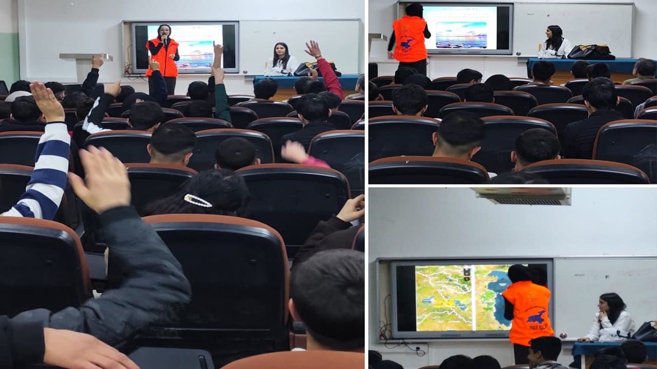 ‘Van Gölü Kirlenmesin Mavi Kalsın’ sloganıyla düzenlenen eğitimde, gölün mevcut durumu, karşı karşıya olduğu kirlilik sorunları, dip çamuru problemi ve ekosistemin korunması adına gençlerin üstlenebileceği sorumluluklar ele alındı. Öğrencilerin aktif katılımıyla Van Gölü’nün geleceğine dair bilinçlendirme çalışmaları yapıldı.