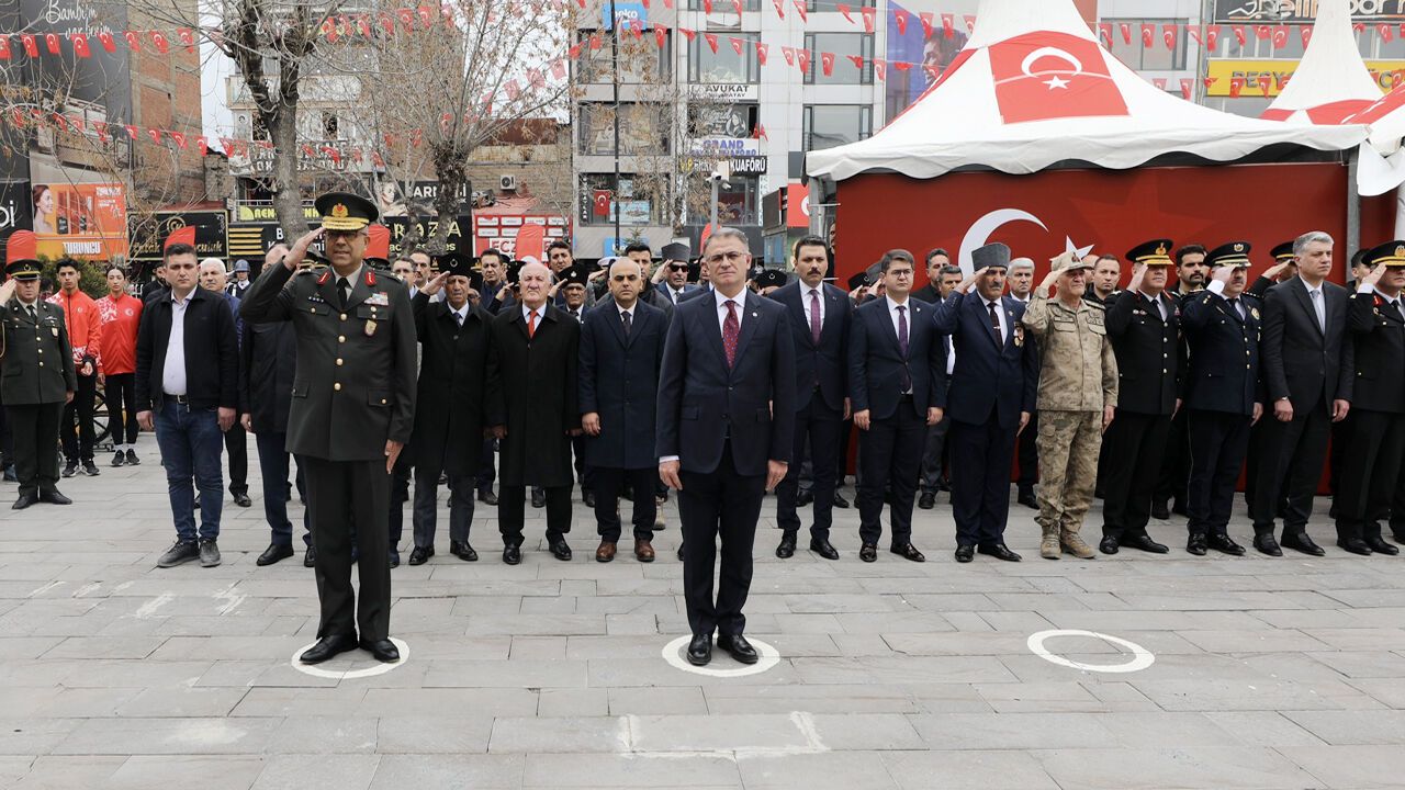 Kutlama programı, Valilik önündeki Atatürk anıtına Van Valisi Ozan Balcı’nın Valilik ve Büyükşehir Belediyesi çelengini, 6. Hudut Komutanı Tuğgeneral Ümit Çelik’in Garnizon Komutanlığı çelengini sunmasıyla başladı.