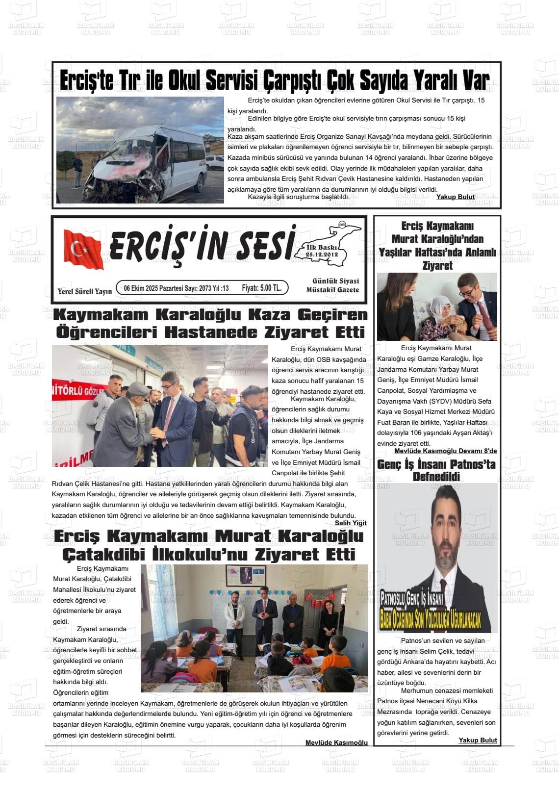 Erciş Sesi Gazetesi’nin 06 Ekim Pazartesi 2025 tarihli manşeti;