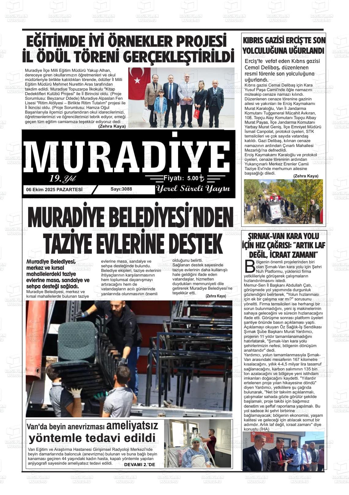 Muradiye Gazetesi’nin 06 Ekim Pazartesi 2025 tarihli manşeti;