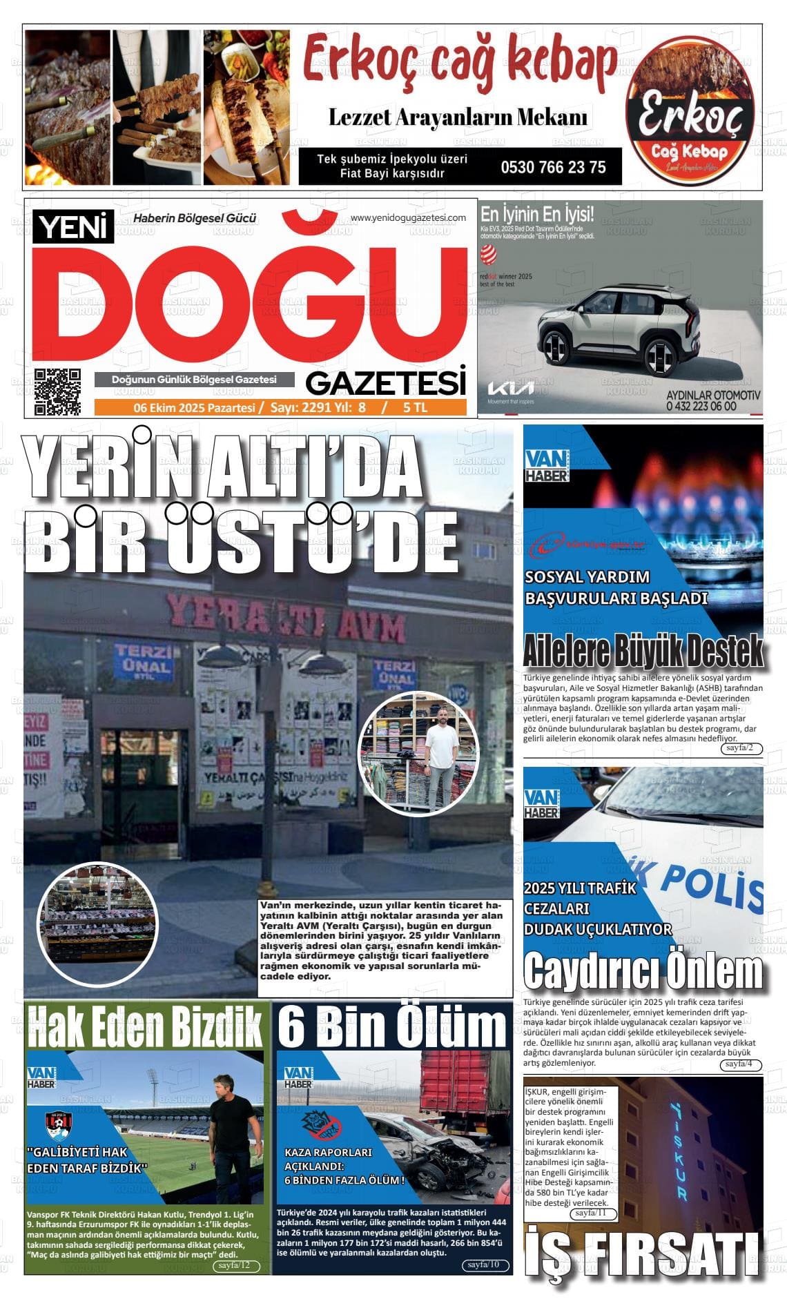 Yeni Doğu Gazetesi’nin 06 Ekim Pazartesi 2025 tarihli manşeti;