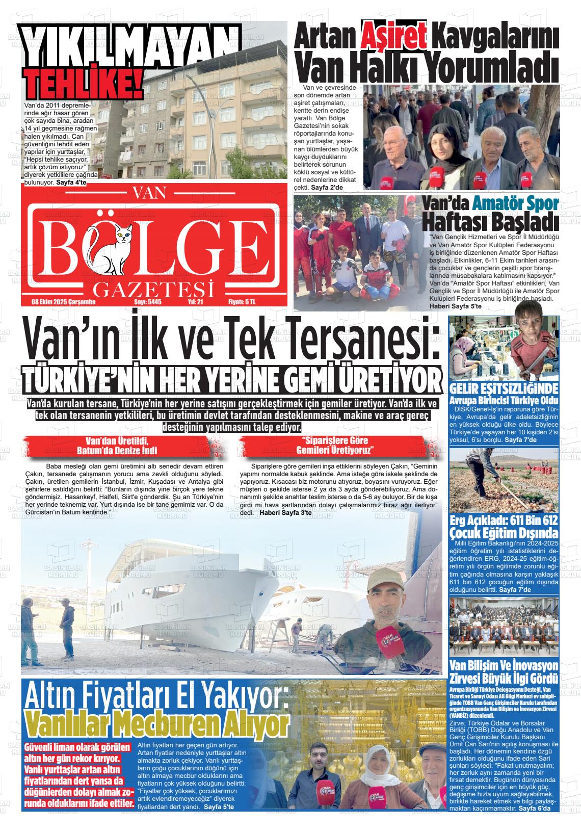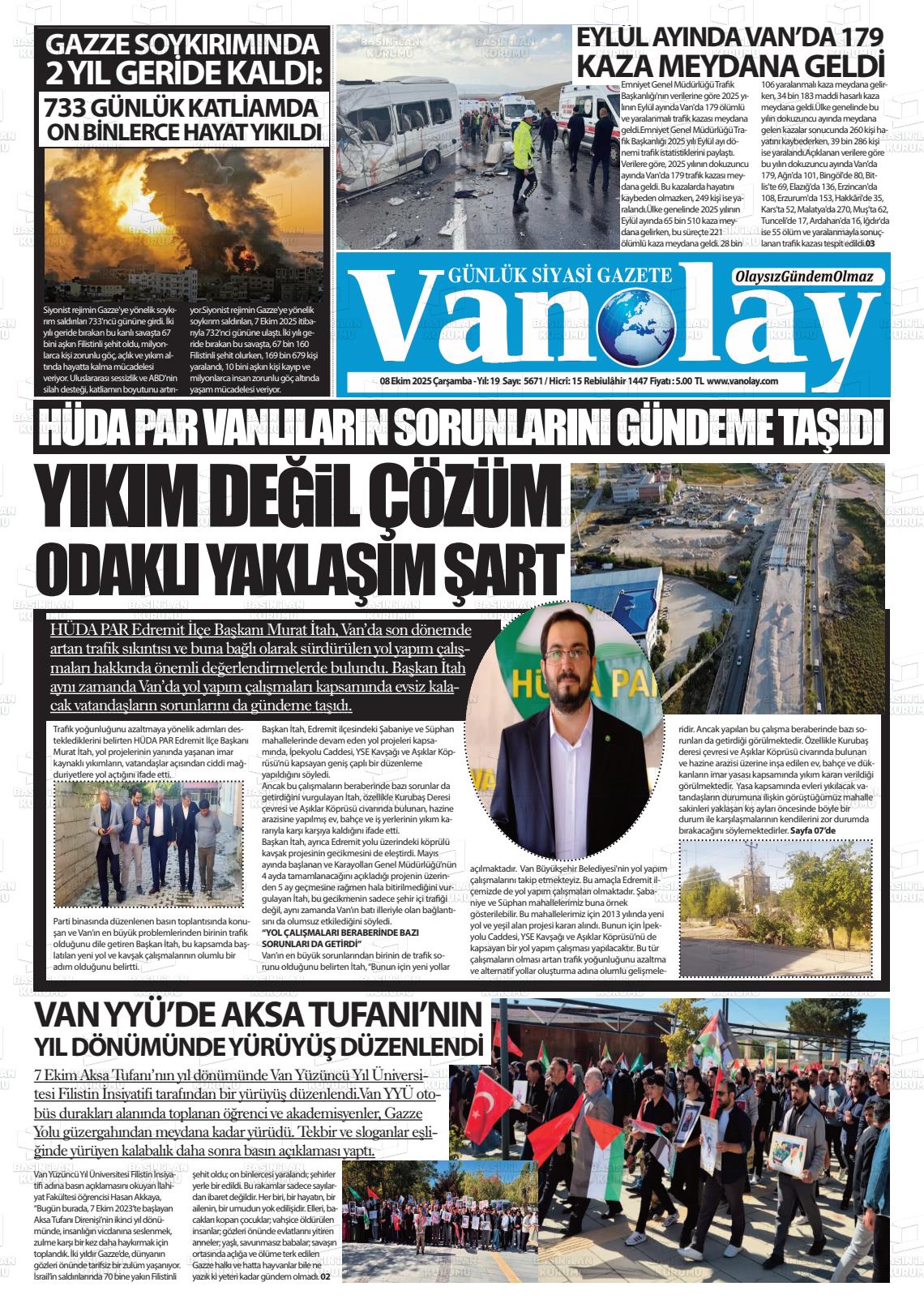 Van Olay Gazetesi’nin 08 Ekim Çarşamba 2025 tarihli manşeti;