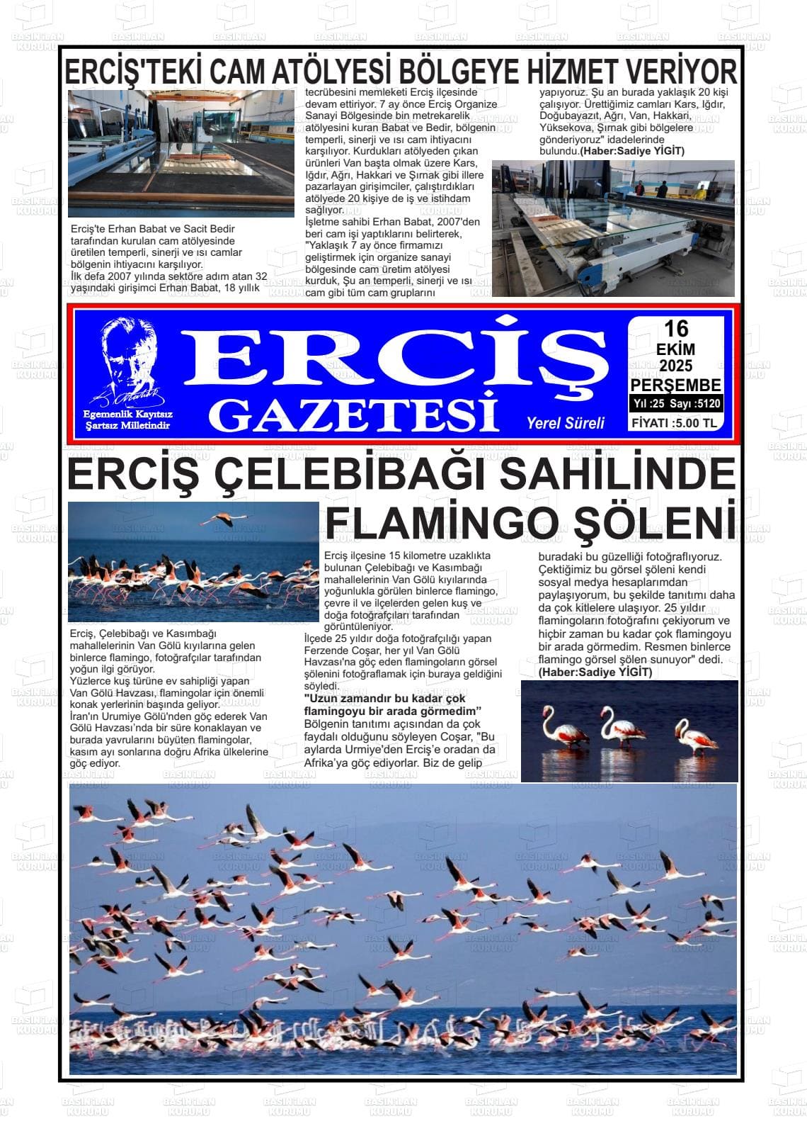 Erciş Gazetesi’nin 16 Ekim Perşembe 2025 tarihli manşeti;