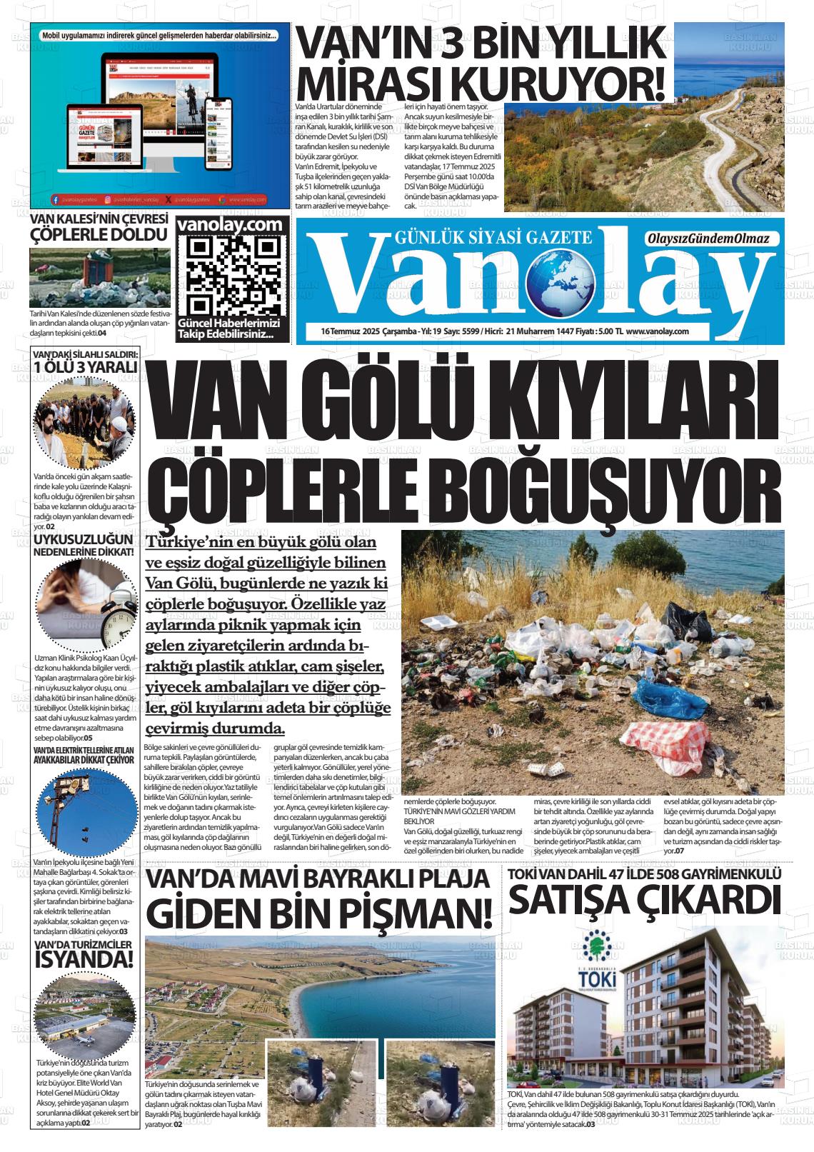 Van Olay Gazetesi’nin 16 Temmuz Çarşamba 2025 tarihli manşeti;