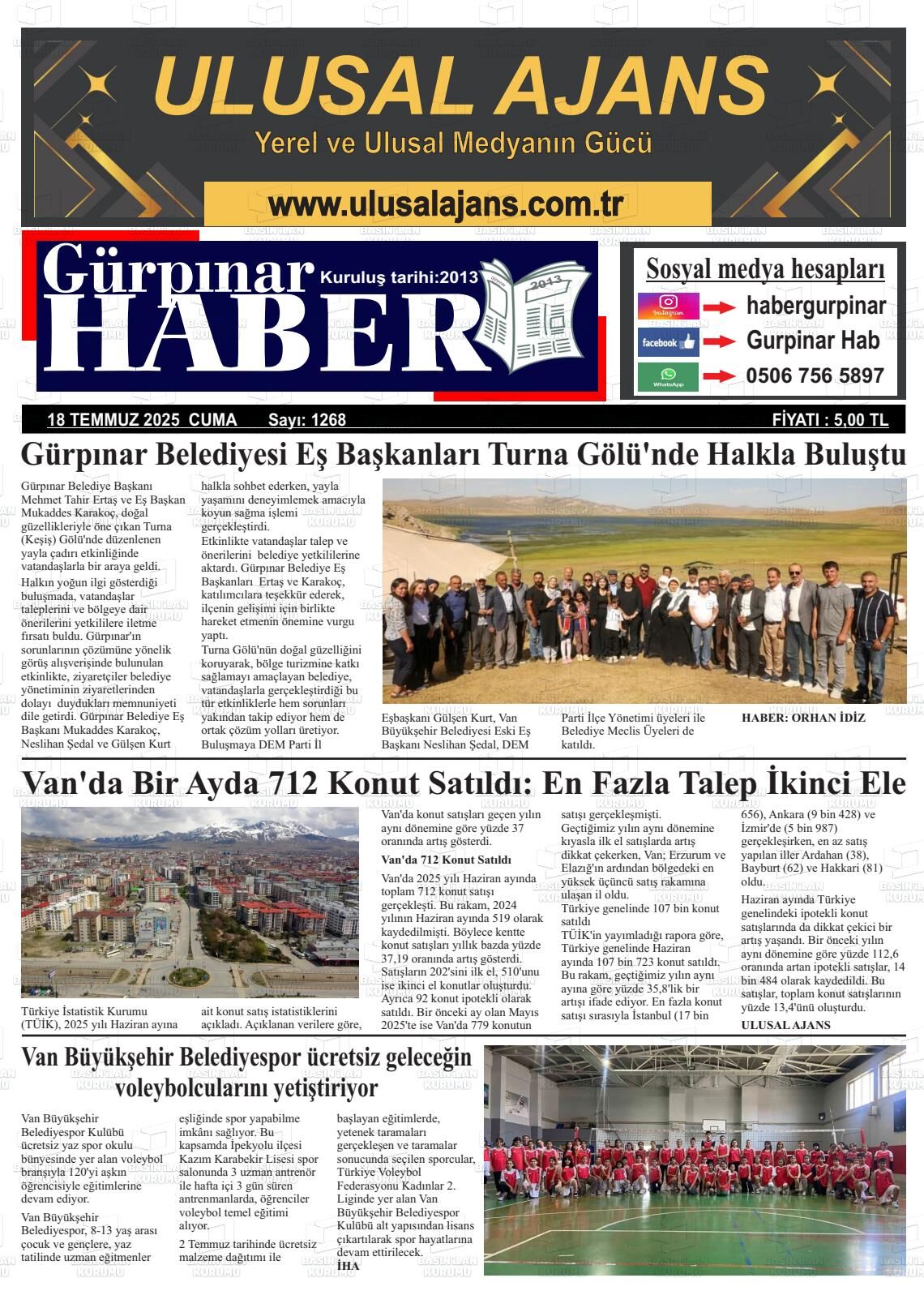 Gürpınar Haber Gazetesi’nin 18 Temmuz Cuma 2025 tarihli manşeti;
