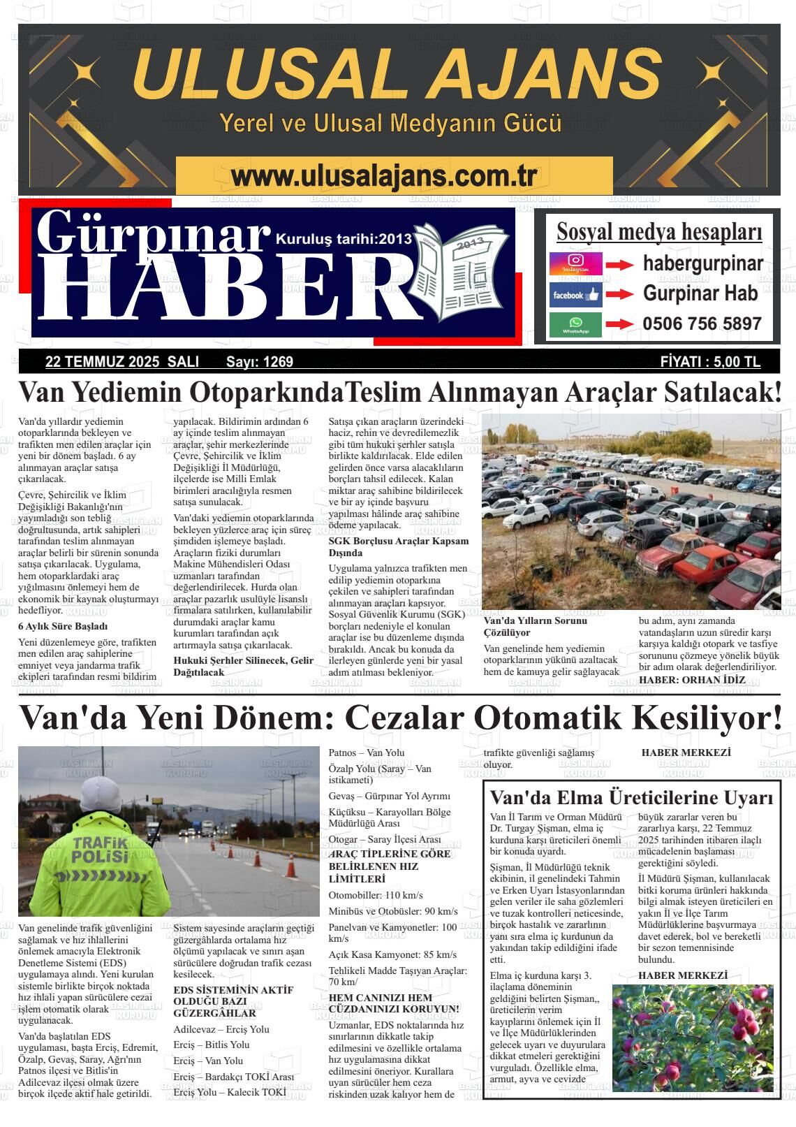 Gürpınar Haber Gazetesi’nin 22 Temmuz Salı 2025 tarihli manşeti;