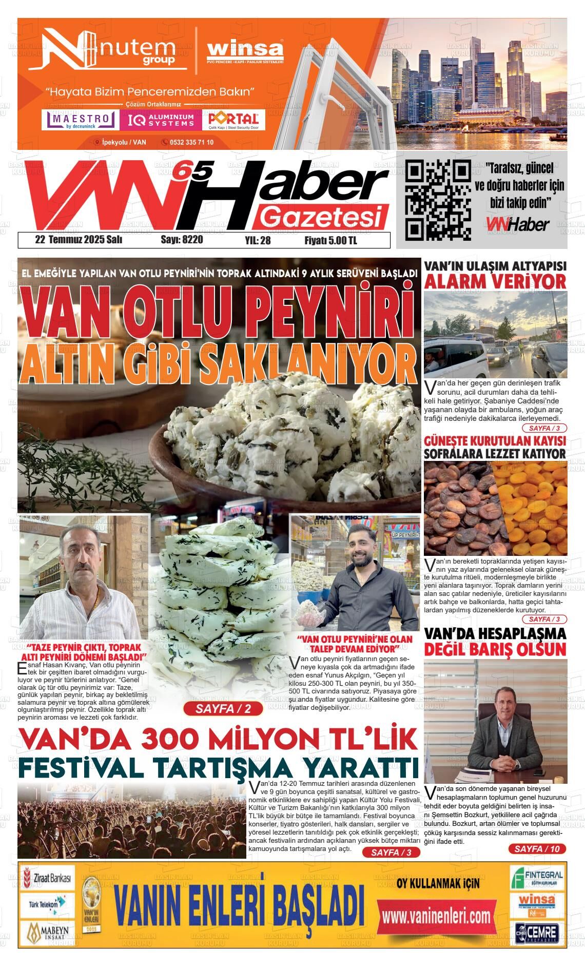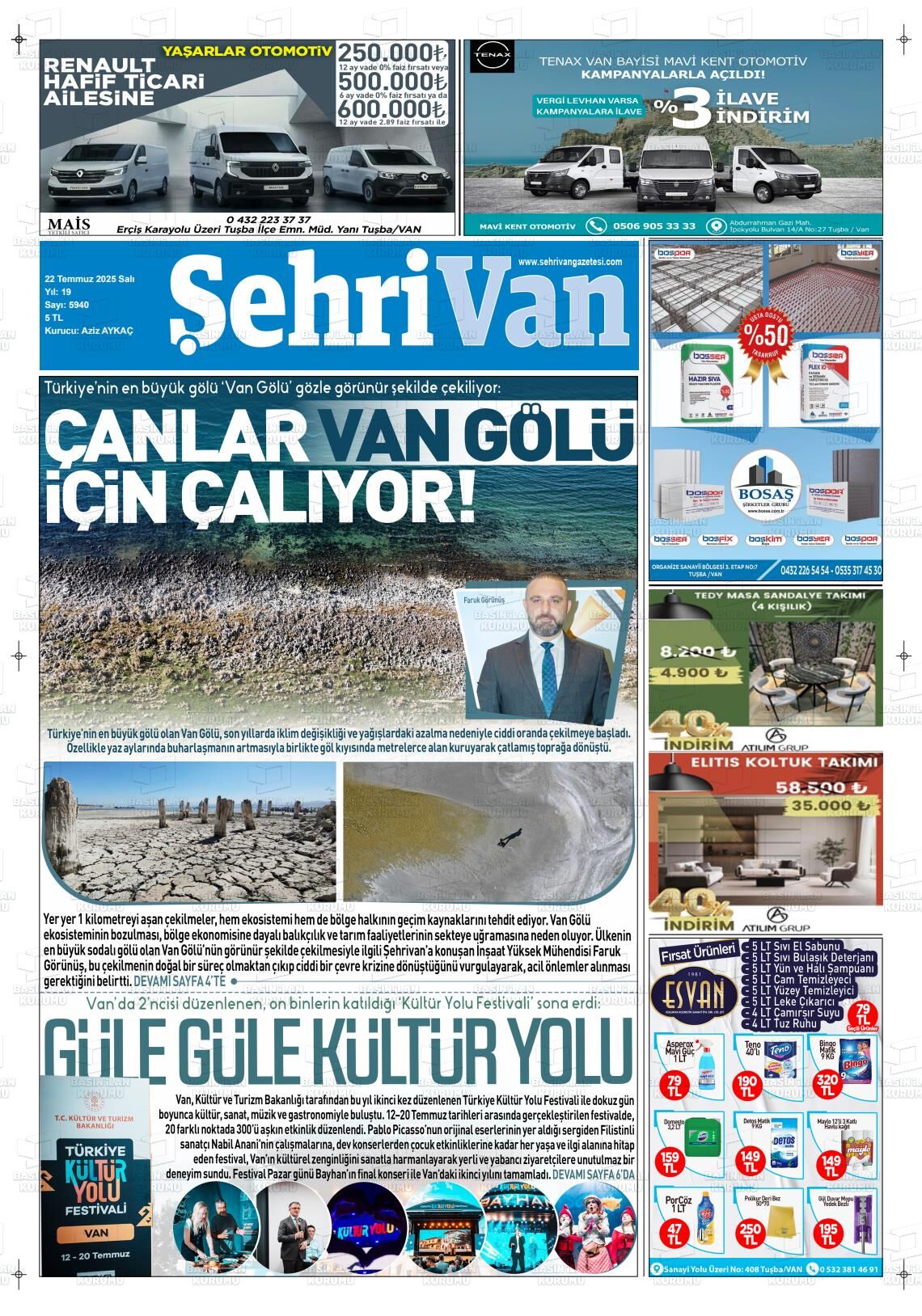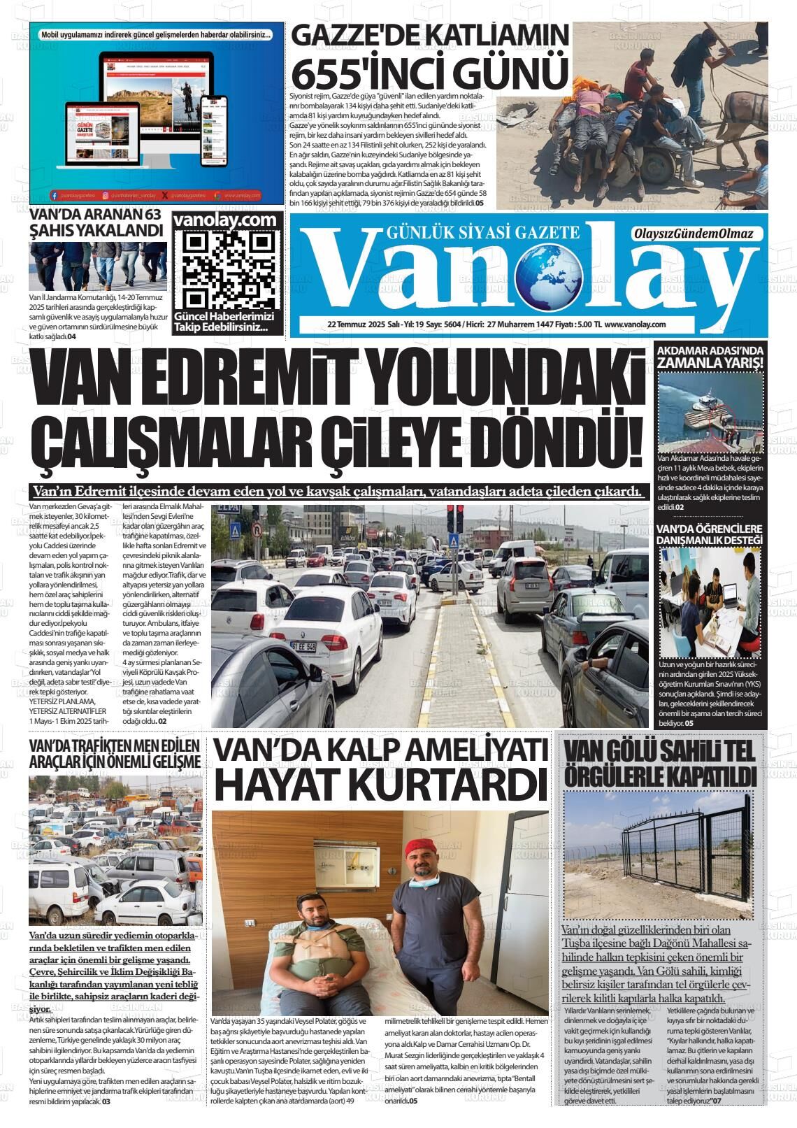 Van65 Haber Gazetesi’nin 22 Temmuz Salı 2025 tarihli manşeti;