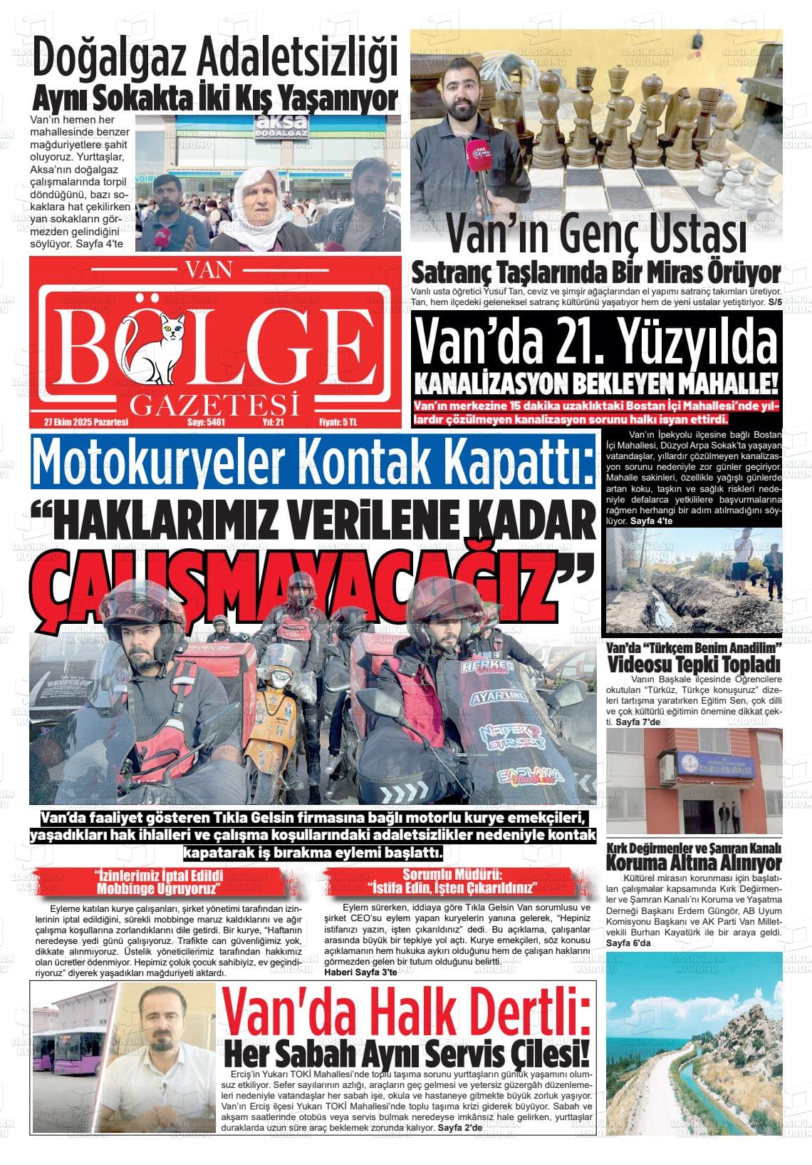 Van Olay Gazetesi’nin 27 Ekim Pazartesi 2025 tarihli manşeti;