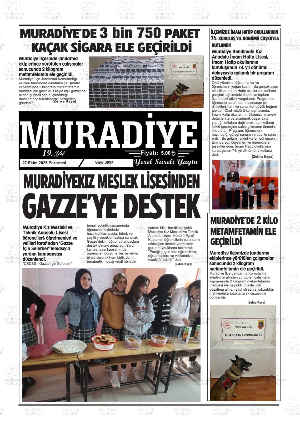 Muradiye Gazetesi’nin 27 Ekim Pazartesi 2025 tarihli manşeti;
