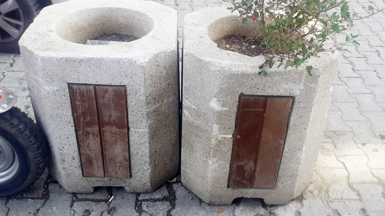 Vatandaşlar, belediyeye çağrıda bulunarak hem boş saksıların kaldırılmasını hem de çöp kovalarının yeniden monte edilmesini istedi.