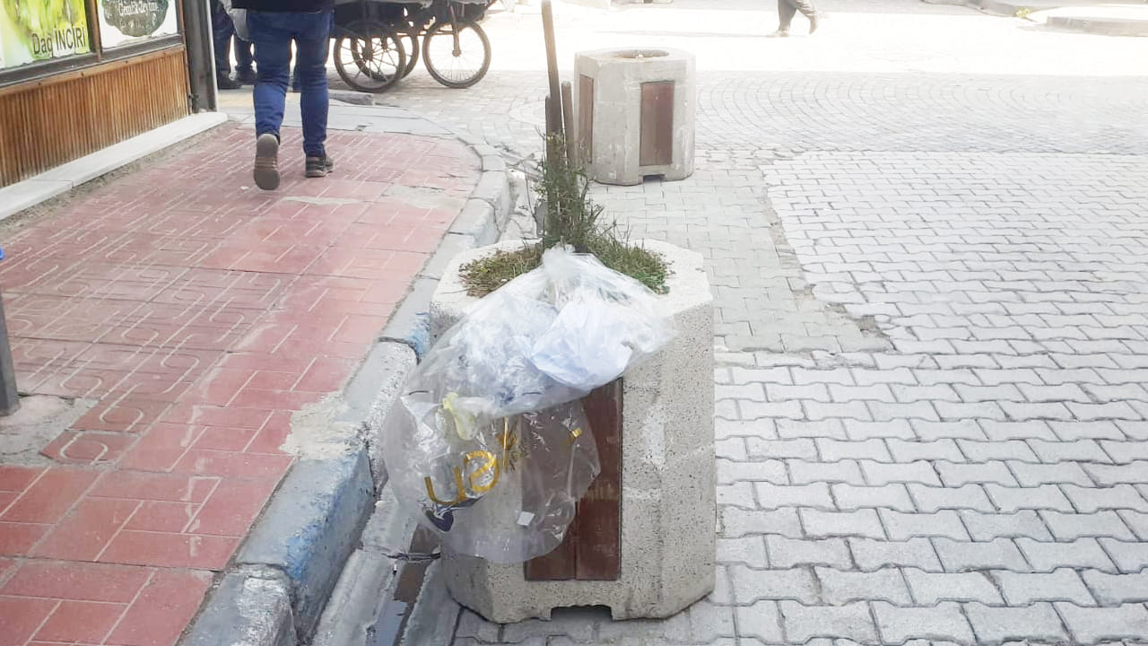İlginç olan ise, aynı bölgedeki kaldırımlarda daha önce bulunan çöp kovalarının da sökülmüş olması. O günden bu yana çöp kovalarının yerine yenisi monte edilmezken, bu durum, çöp atacak yer bulamayan vatandaşları ve esnafı boş saksıları kullanmaya itiyor.