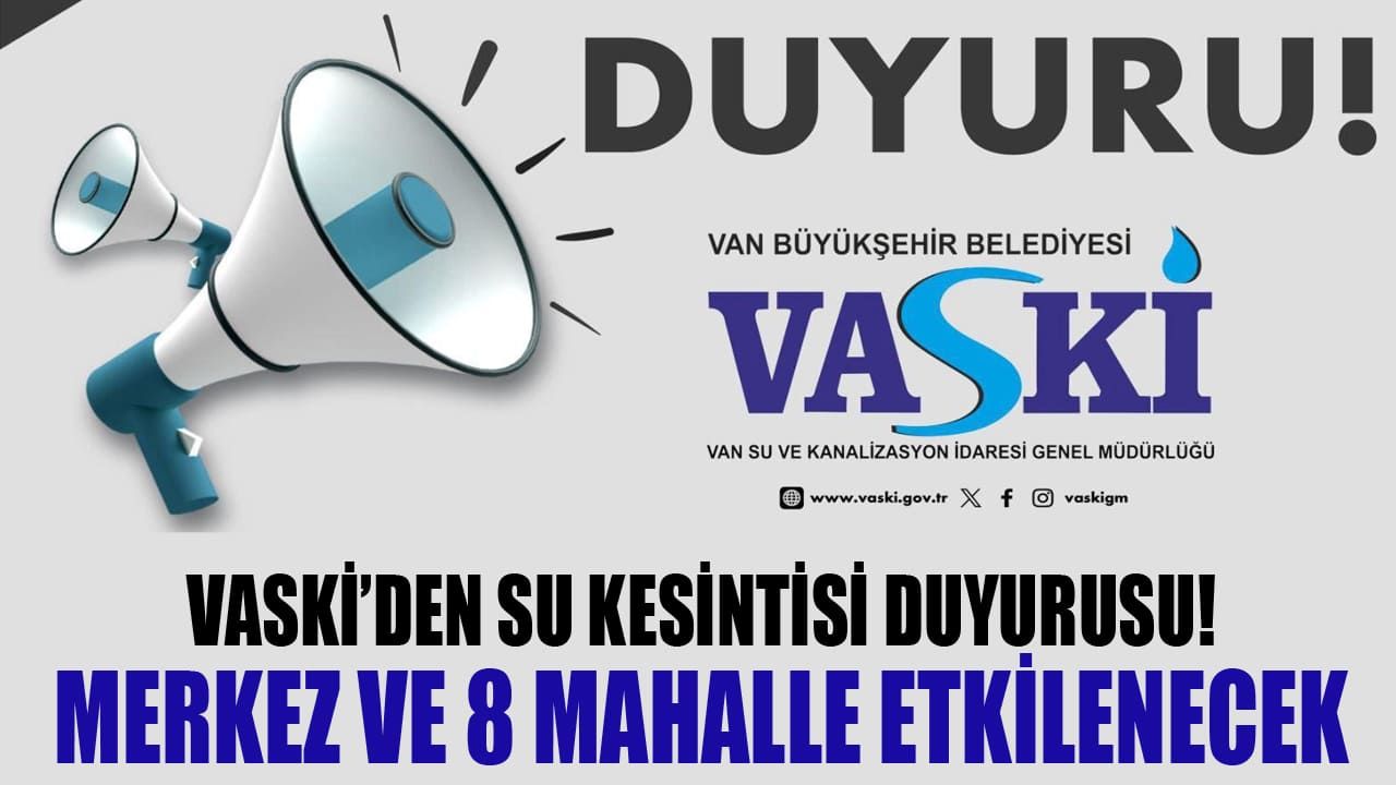 Erciş’te bugün 11.00-18.00 saatleri arasında yapılacak olan bakım ve onarım çalışması nedeniyle Erciş merkez başta olmak üzere 8 mahallede su kesintisi yaşanacağı vurgulandı.