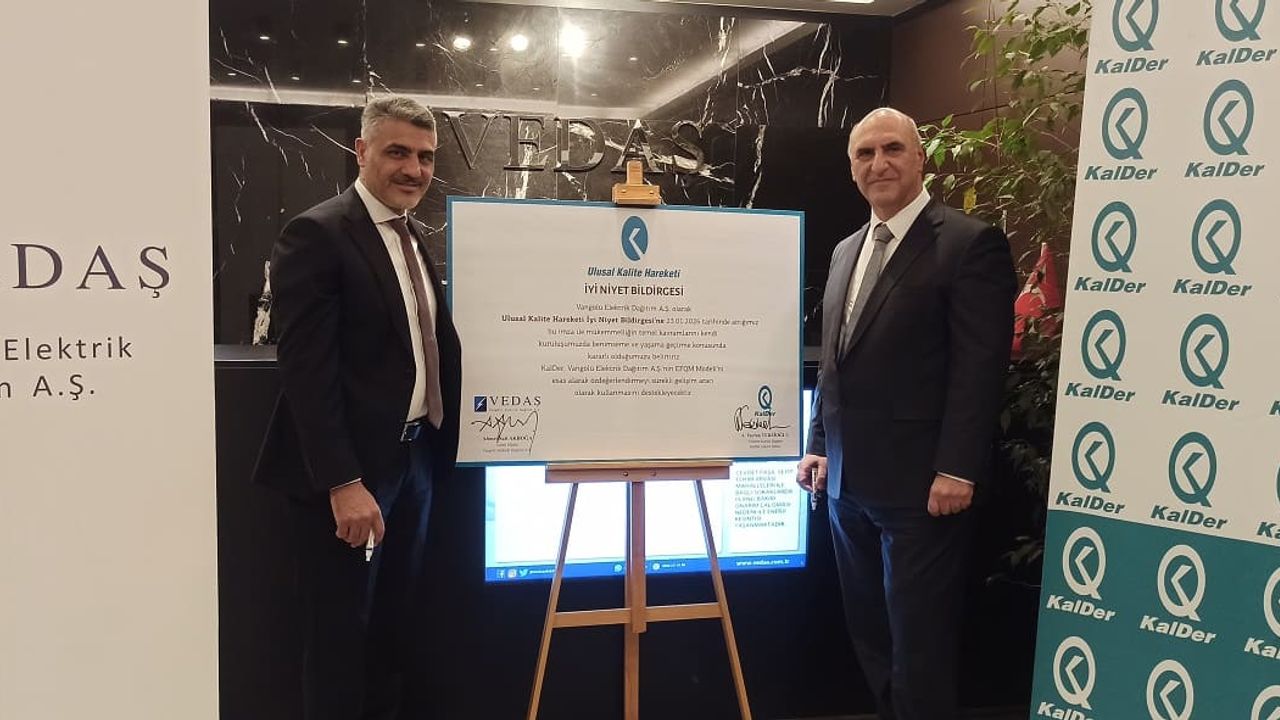 Hizmet kalitesini sürekli geliştirmeyi hedefleyen VEDAŞ, kalite odaklı yönetim anlayışını güçlendirmek amacıyla Türkiye Kalite Derneği (KalDer) ile İyi Niyet Bildirgesi imzaladı.