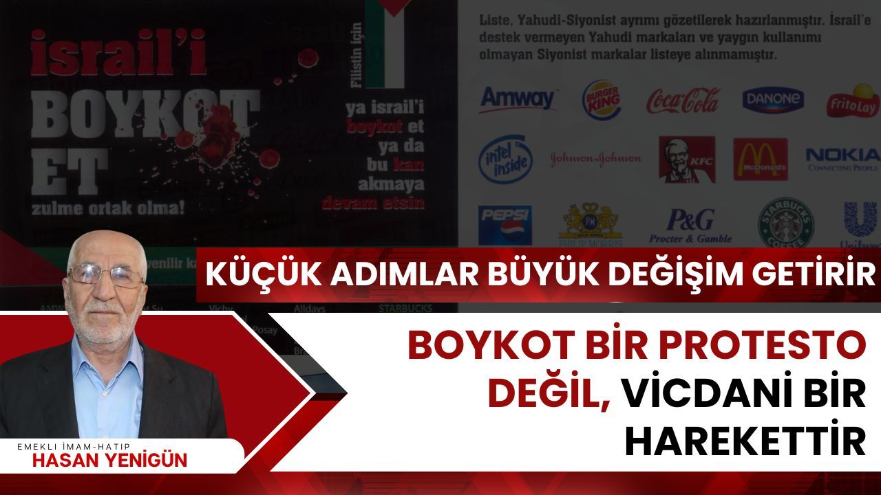 Yenigün, "Bizim paramızla onlara herhangi bir yardım geçmemesi lazım. Allah-u Teâlâ, iyilikte yardımlaşmamızı, günahta ve zulümde ise yardımlaşmamamızı istiyor" dedi. Boykotun küçük bir adım gibi görünebileceğini ancak atılan bu küçük adımların büyük değişimlere sebebiyet vereceğini dile getirerek, boykotun geçici değil, devamlı ve bilinçli bir şekilde sürdürülmesi çağrısında bulundu.